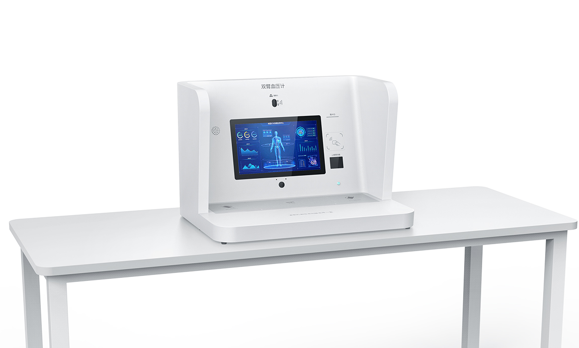 聚焦于为医疗场景打造智能化、便捷化的健康监测与服务终端,通过集成清晰的显示界面与多样的交互功能,助力用户高效获取健康数据、完成相关医疗服务操作,满足现代医疗对数字化、人性化设备的需求。外观风格上,采用了简洁大气的设计,以白色为主色调,整体造型规整且富有科技感,半包围的结构既营造出相对私密的操作空间,又通过流畅的线条与简洁的色彩搭配,让产品在医疗环境中显得专业且易于融入,传递出一种现代医疗科技的先进与可靠感
